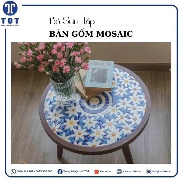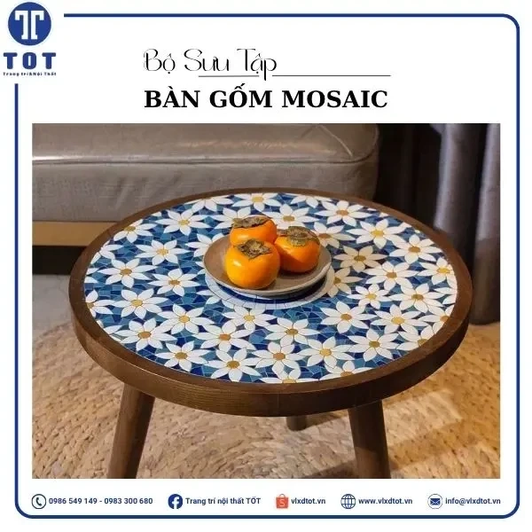 Mặt bàn: Gốm mosaic (Gốm ghép mảnh)