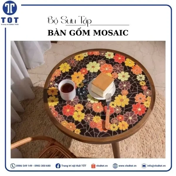 Mặt bàn: Gốm mosaic (gốm ghép mảnh)