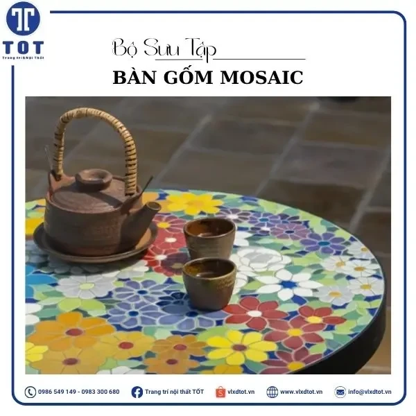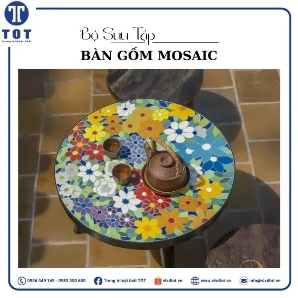 Mặt bàn: Gốm mosaic (Gốm ghép mảnh)