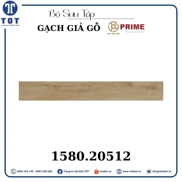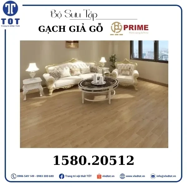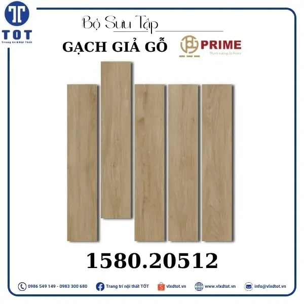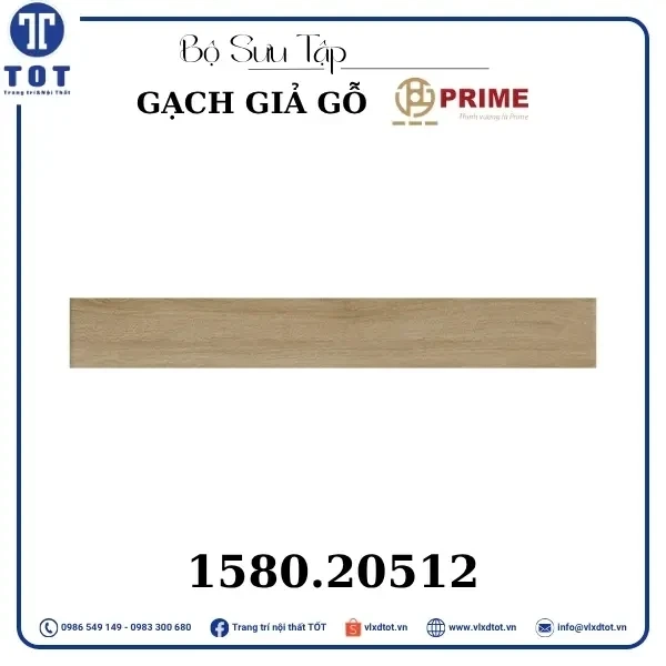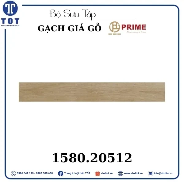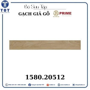 Gạch lát nền Prime kích thước 15x80 cm có thiết kế giả gỗ với màu sắc gỗ sáng, mang lại vẻ đẹp ấm áp và tự nhiên cho không gian sống. Mẫu gạch này giúp tạo nên không gian gần gũi, thân thiện và sang trọng, thích hợp cho nhiều phong cách trang trí nội thất khác nhau.