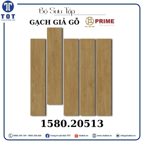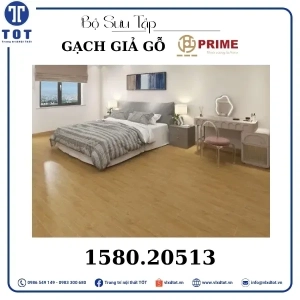 Gạch lát nền Prime kích thước 15x80 cm có thiết kế giả gỗ với màu sắc gỗ sáng, mang lại vẻ đẹp ấm áp và tự nhiên cho không gian sống. Mẫu gạch này giúp tạo nên không gian gần gũi, thân thiện và sang trọng, thích hợp cho nhiều phong cách trang trí nội thất khác nhau.