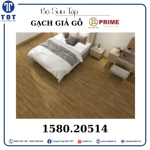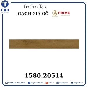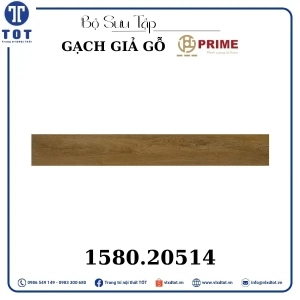 Gạch lát nền Prime kích thước 15x80 cm có thiết kế giả gỗ với màu sắc gỗ sáng, mang lại vẻ đẹp ấm áp và tự nhiên cho không gian sống. Mẫu gạch này giúp tạo nên không gian gần gũi, thân thiện và sang trọng, thích hợp cho nhiều phong cách trang trí nội thất khác nhau.