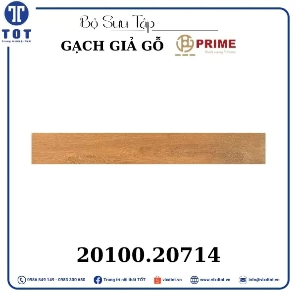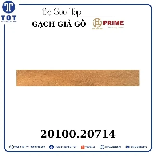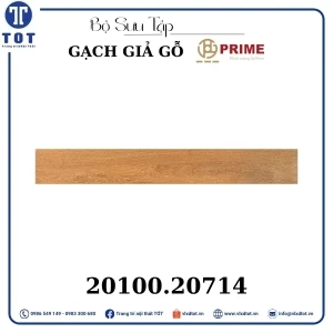 Gạch lát nền Prime kích thước 20x100 cm có thiết kế giả gỗ với màu sắc gỗ, mang lại vẻ đẹp ấm áp và tự nhiên cho không gian sống. Mẫu gạch này giúp tạo nên không gian gần gũi, thân thiện và sang trọng, thích hợp cho nhiều phong cách trang trí nội thất khác nhau.