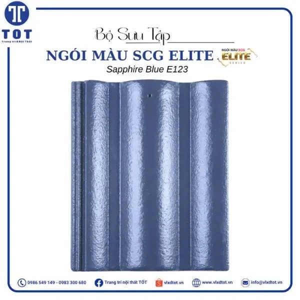 Ngói màu SCG Elite Màu Sapphire Blue là mẫu ngói lợp thuộc nhóm Gold Collection màu Xanh Xa-phia (Sapphire Blue). Với đột phá từ công nghệ phủ màu 3 lớp, Công nghệ phủ màu Double Coating mang đến viên ngói với nhiều ưu điểm vượt trội: