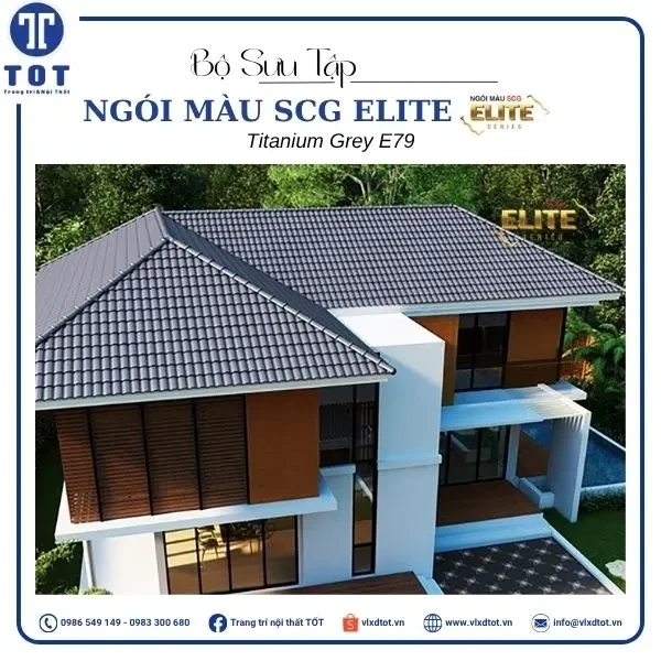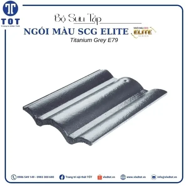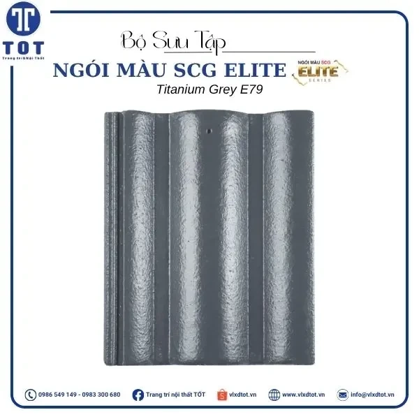 Ngói màu cao cấp SCG Elite màu Titanium Grey E79 là mẫu ngói lợp thuộc nhóm Classic Collection màu Xám Titan. Với đột phá từ công nghệ phủ màu 3 lớp, công nghệ phủ màu Double Coating mang đến viên ngói với nhiều ưu điểm vượt trội: